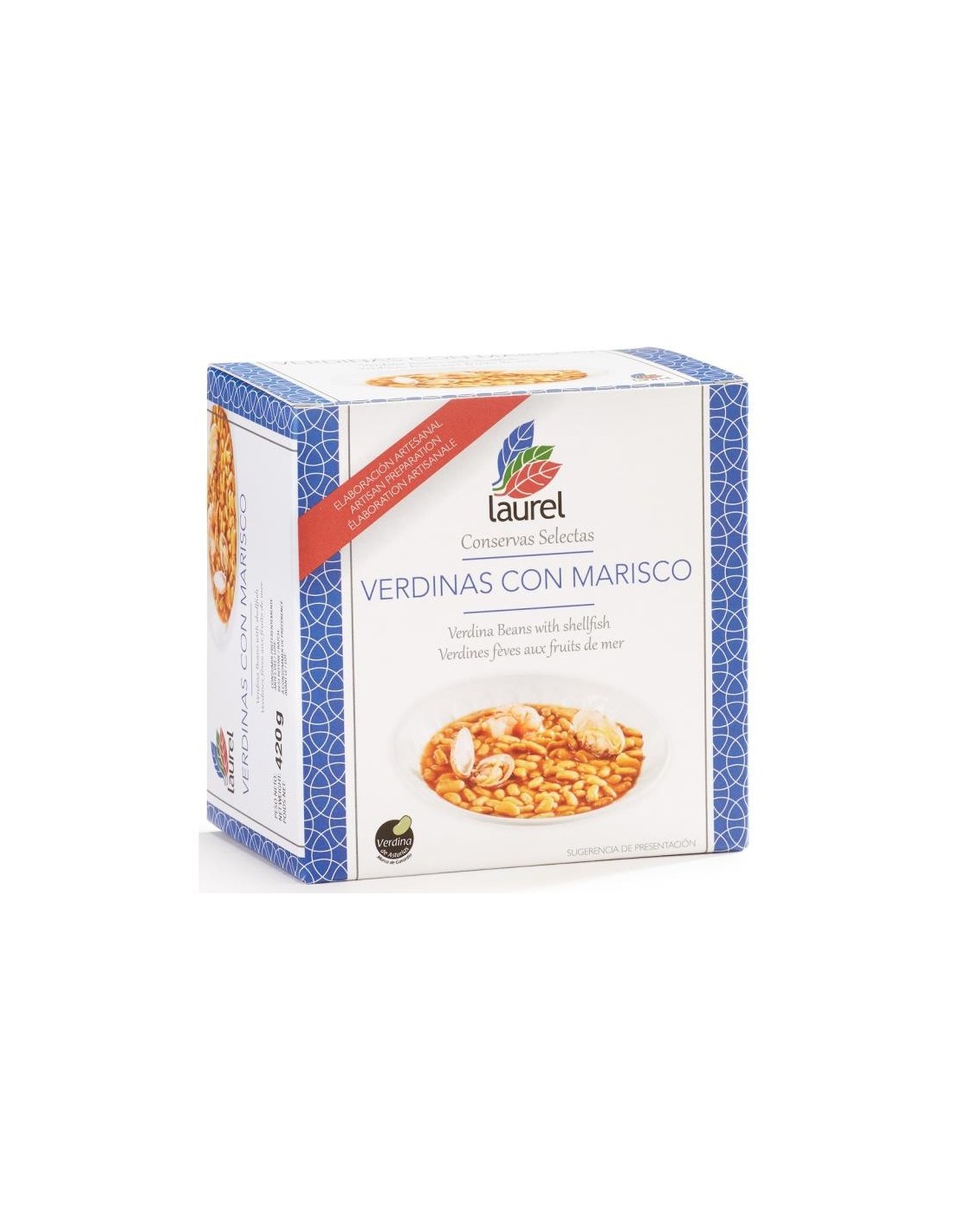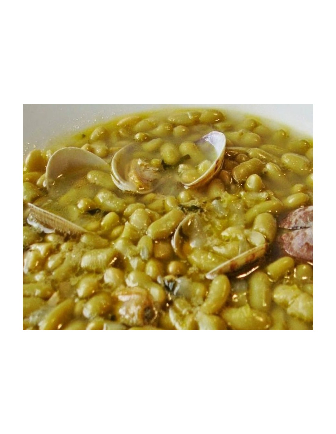La alubia verdina es una variedad de haba de pequeño tamaño color verde esmeralda de gran valor gastronómico. Este maridaje típico con almejas y langostinos del Cantábrico hacen de esta mezcla un menú sabroso y ligero para en cualquier época del año.