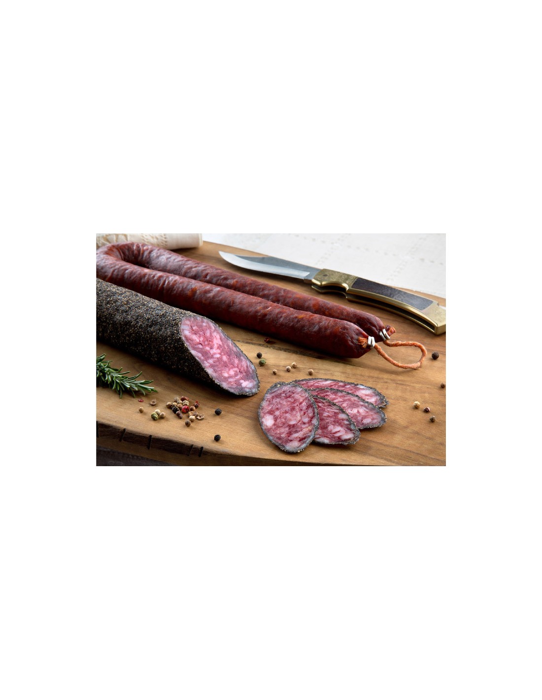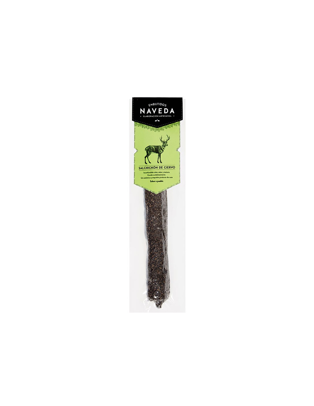 Carne de ciervo 81%, carne de cerdo, sal, dextrosa, proteína de cerdo, azúcar, emulgentes (E450, E451, E452), antioxidantes (E301, E325, E331), ajo,, especias, conservadores (E250, E252), colorante (E120). Retirar envoltura antes de consumir.