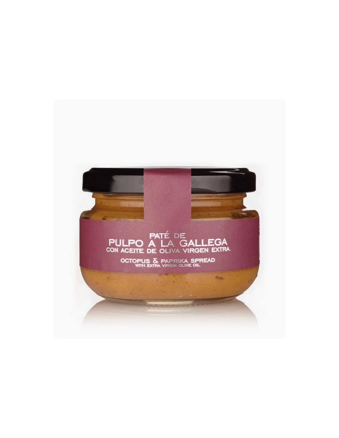 Caldo de pulpo (agua, pulpo, especias), pulpo (32%), aceite de oliva virgen extra, pimentón (1%), puré de patata, sal,especias, aroma de marisco, estabilizante (E-407), potenciador del sabor(E-621, E-635). Puede contener trazas de crustáceos.
